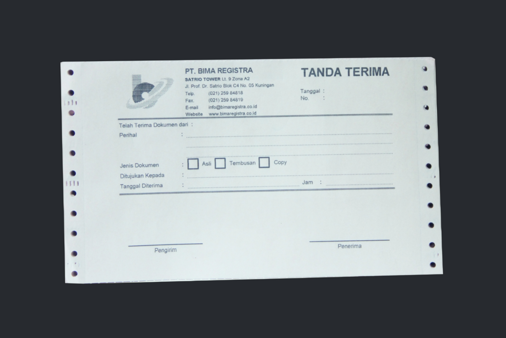 Surat Tanda Terima (STT) merupakan dokumen yang tertulis sebagai bukti bahwa pihak pengirim telah menyerahkan dokumen kepada pihak penerima. Surat tanda terima dokumen merupakan bukti empiris atas terjadinya transaksi serah terima dokumen, baik berupa surat penting, barang maupun uang. Dengan adanya surat tanda terima, Anda bisa melacak kebenaran bahwa barang yang diantar sudah diterima.